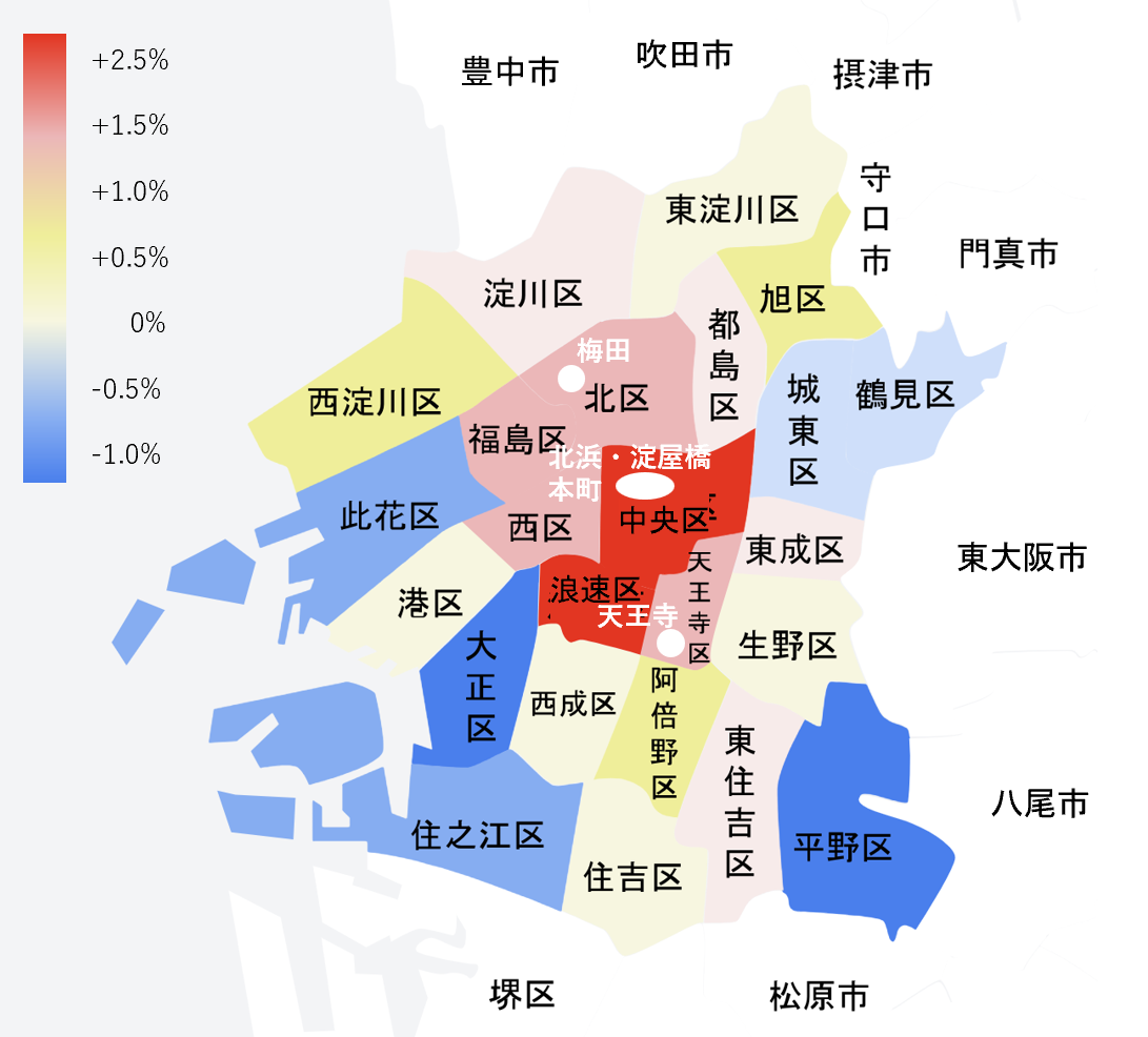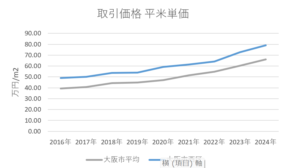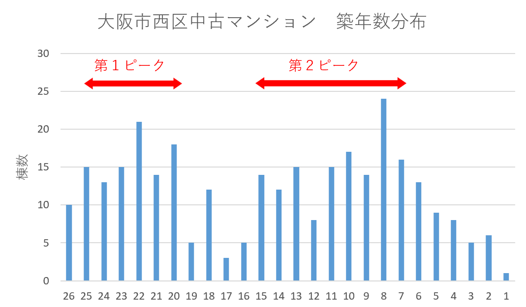 また、それらのピークの時に、なにわ筋~四ツ橋筋の間のエリアに多くのマンションが建ちましたので、大阪市中心部により近い立地のものがこれからたくさん出てくるのではないかと予想しています。